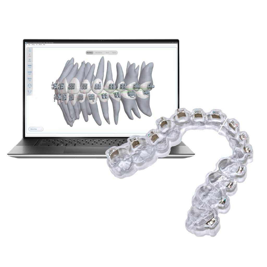 The DIBS AI integrated software platform has been developed to largely automate the process of orthodontic patient case setups, provide predictive outcomes for treatment plans, and offer the latest in print technology with extremely accurate 3D-printed bracket transfer appliances (ie, IDB trays). These advancements, help shorten the time required for bonding appointments by a third or more, as well as reducing overall treatment time through significant decreases in the need for wire bending and bracket repositioning.
